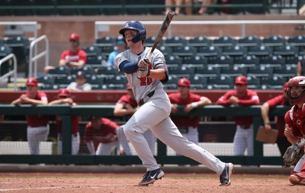 There’s a lot to like about Splaine, a long-levered power hitter who is unranked but instantly caught my attention while watching a College World Series game versus Coastal Carolina recently. Ultimately, Arizona lost the game, but the double helped the Wildcats get some momentum.